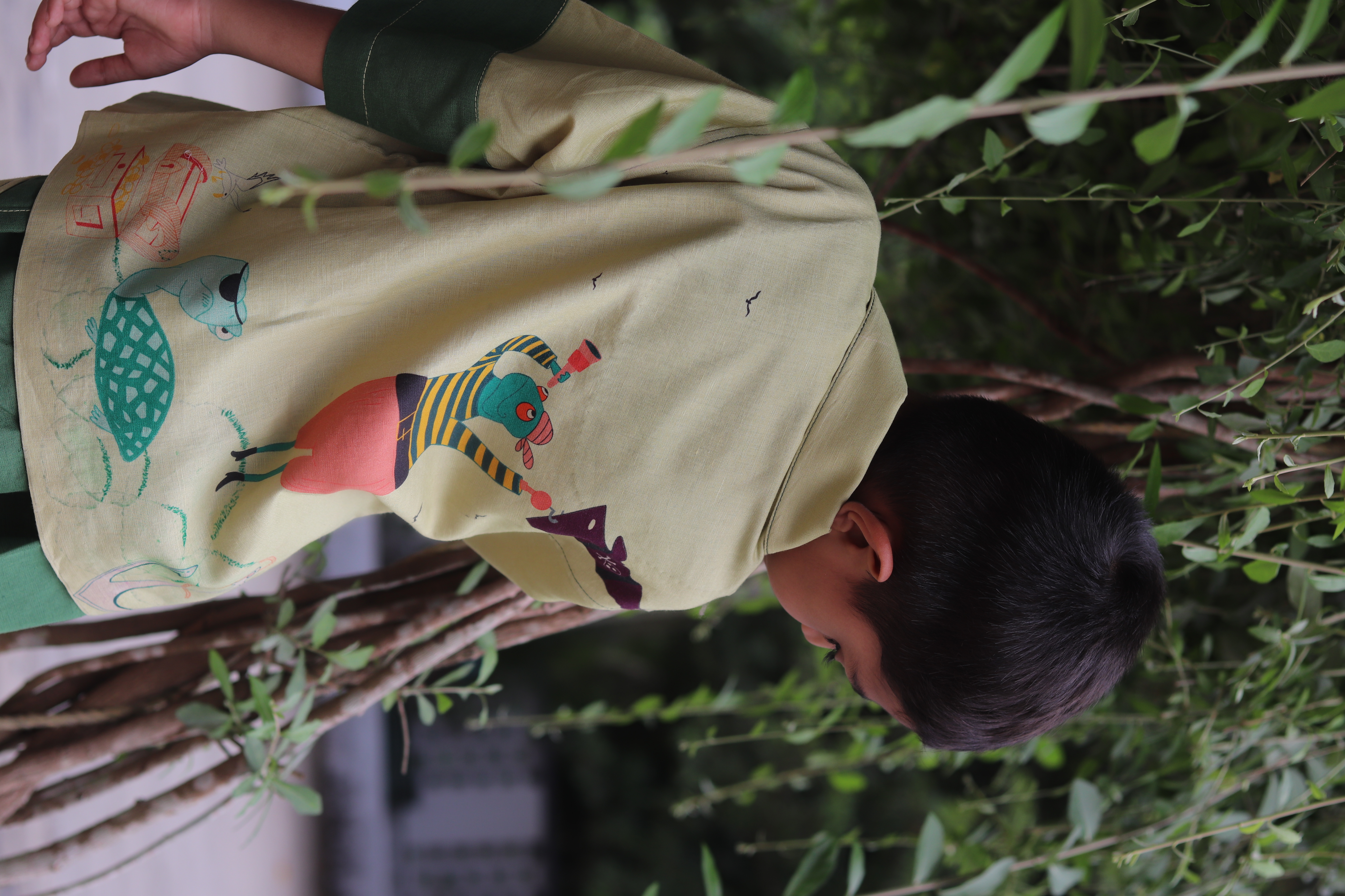 With a name, concept, and designs all sprouted from Yuvaan's creative mind, each print and pattern tells a story, nurtured by his love for nature and boundless curiosity. While Yuvaan's hands may not stitch the fabrics, the essence of Sunfeng is woven together by his imaginative spirit and a dedicated team that breathes life into his visions. Together, we embark on a journey to transform youthful imagination into wearable art, celebrating the pure joy and wonder of childhood exploration.